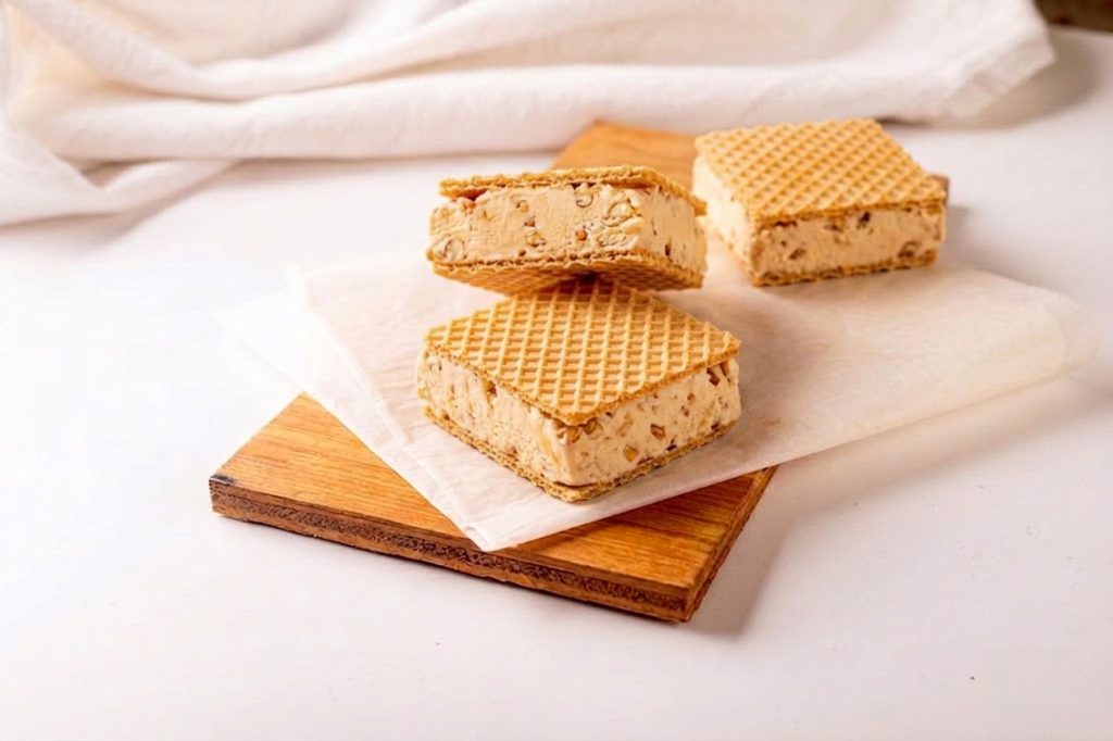 Aus Turrón, Erdbeere und Sahne oder Vanille, Schokolade und Sahne. Diese Waffel ruft bei jedem Valencianer tausend Erinnerungen an Sommer mit der Familie hervor.