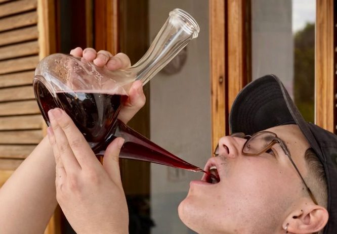 Wir servieren ihn in der Karaffe für die Vorsichtigen und im Porrón für alle, die sich trauen.